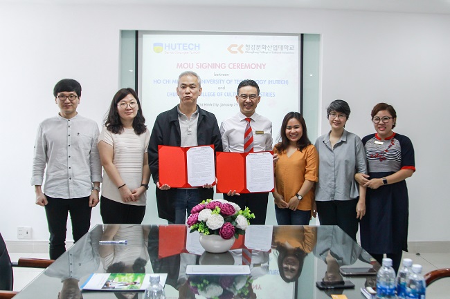 Lễ ký kết biên bản ghi nhớ hợp tác (MOU) giữa Trường Đại học Công nghệ TP.HCM (HUTECH) và Trường CĐ Công nghệ Văn hóa Chung Kang (Hàn Quốc) vừa diễn ra sáng ngày 23/1/2018, tại trụ sở chính của HUTECH, đánh dấu sự hợp tác sâu rộng hơn trong việc nâng cao chất lượng đào tạo nguồn nhân lực trên lĩnh lực truyền thông thiết kế.